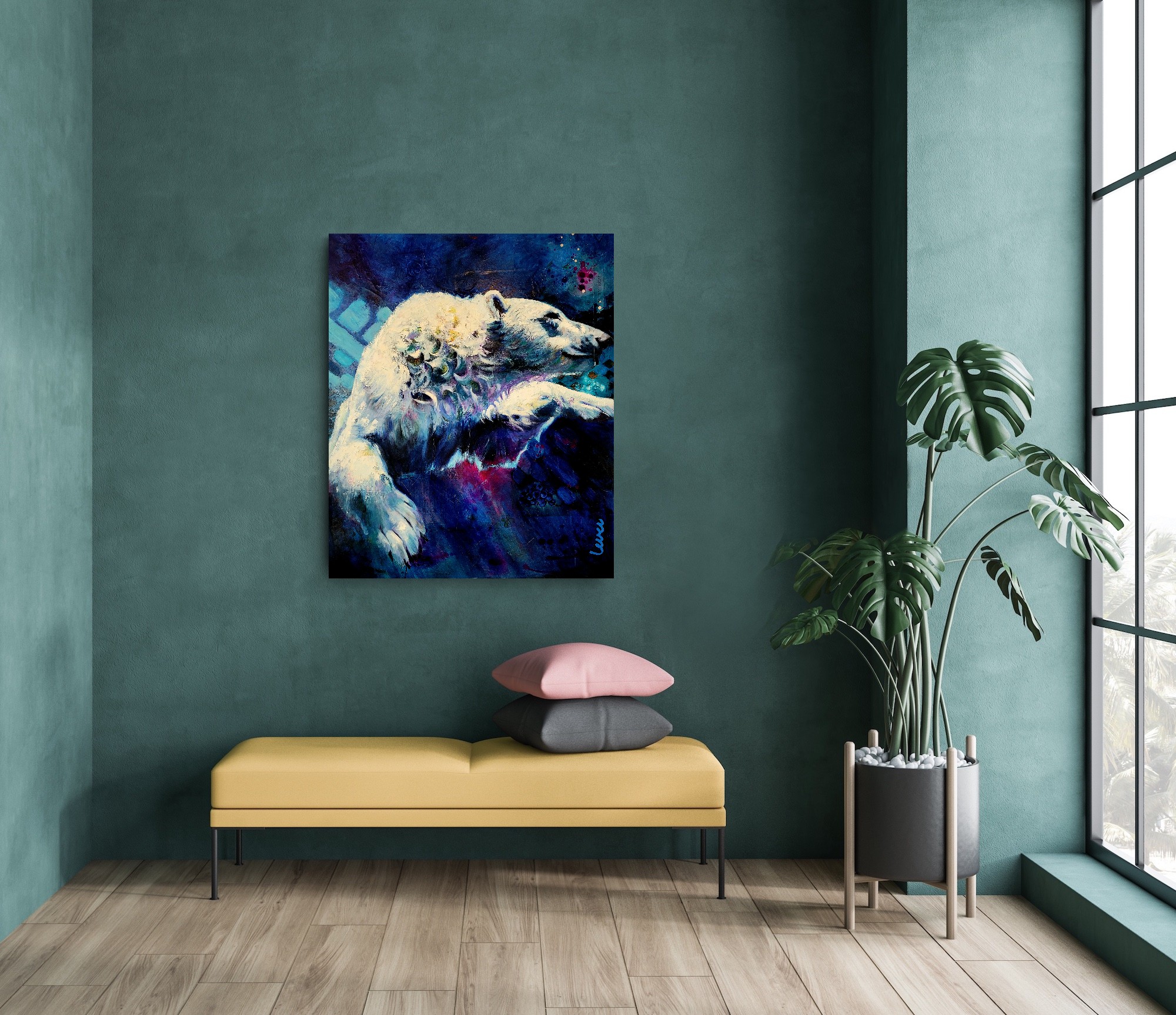 - Oil on linen, gallery wrapped on a wooden frame