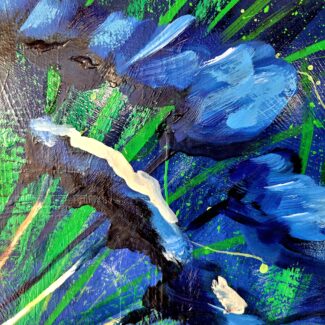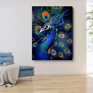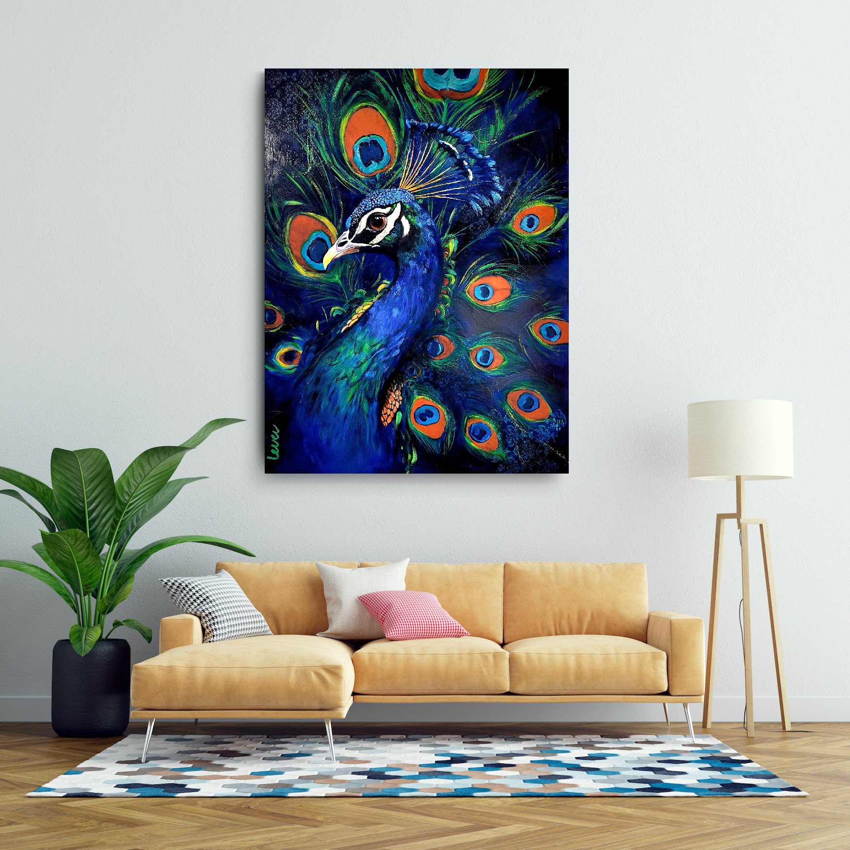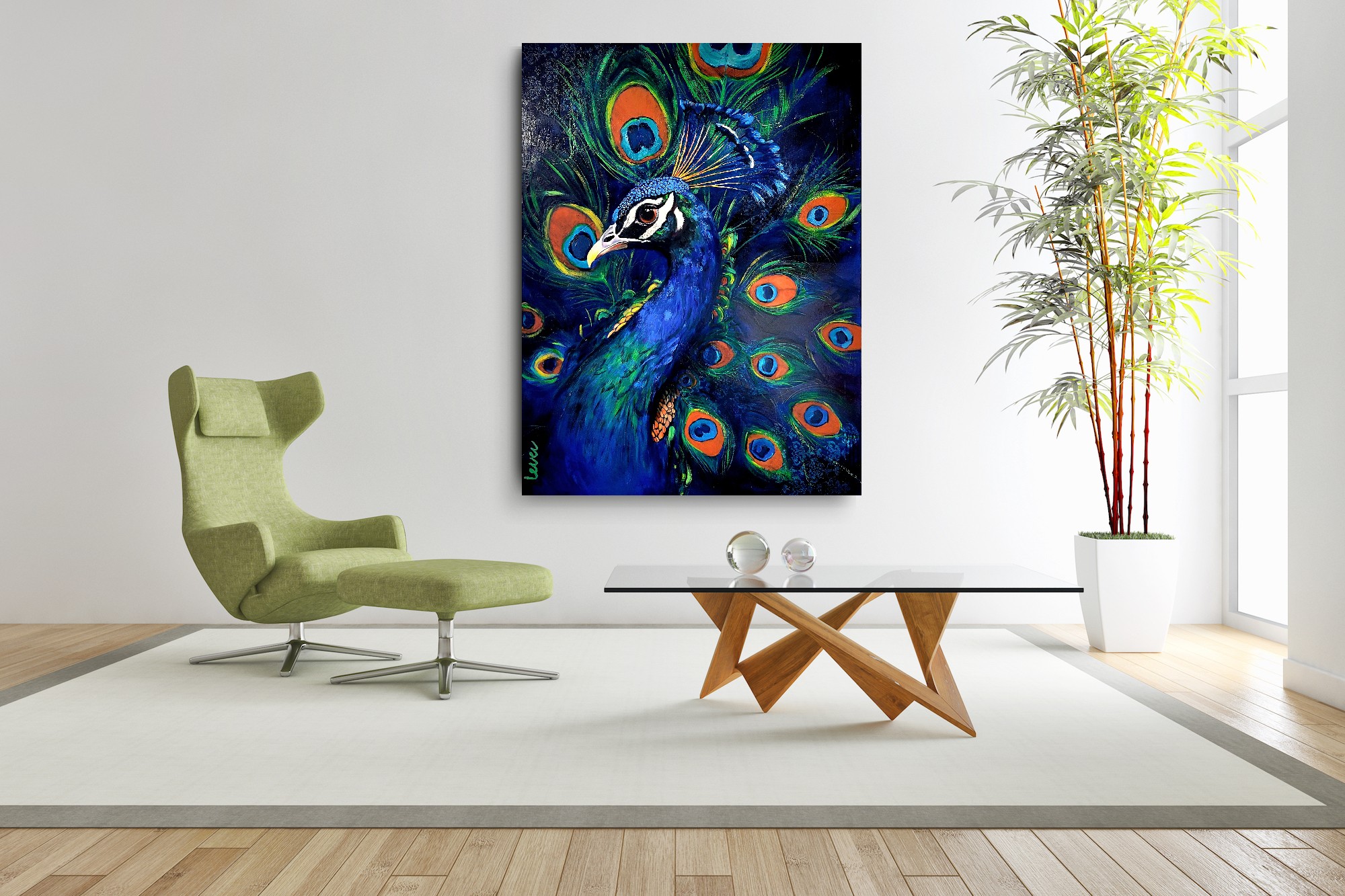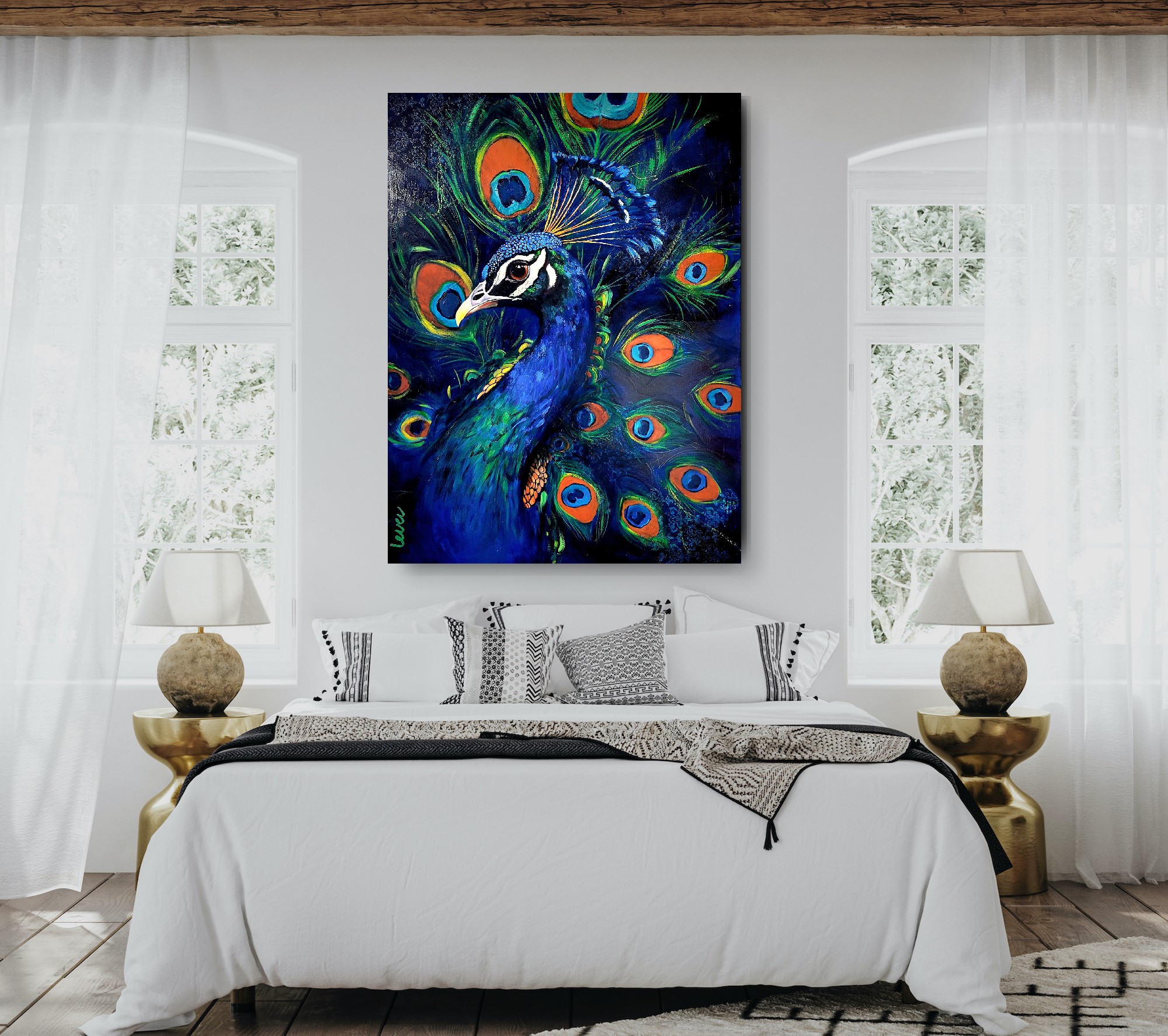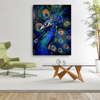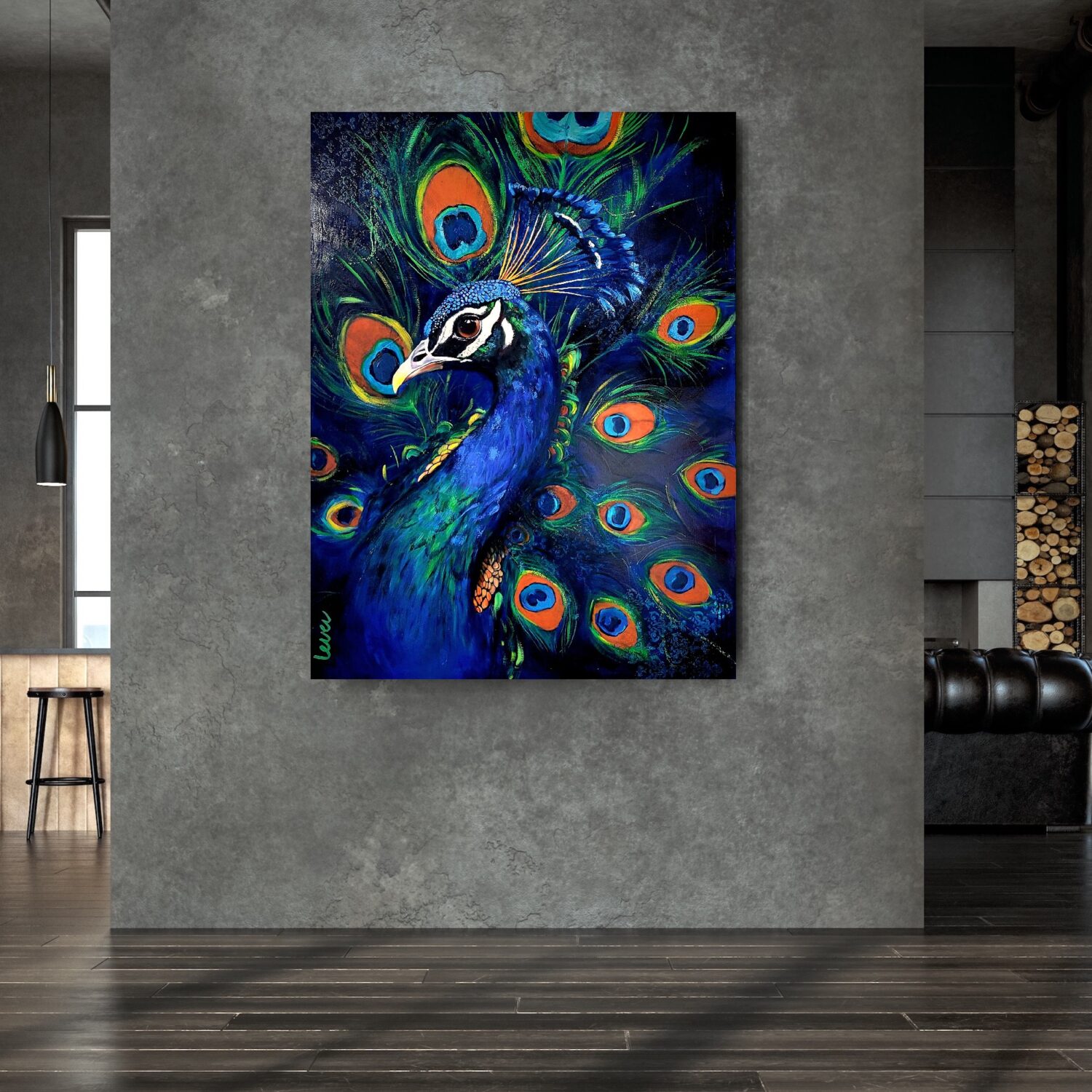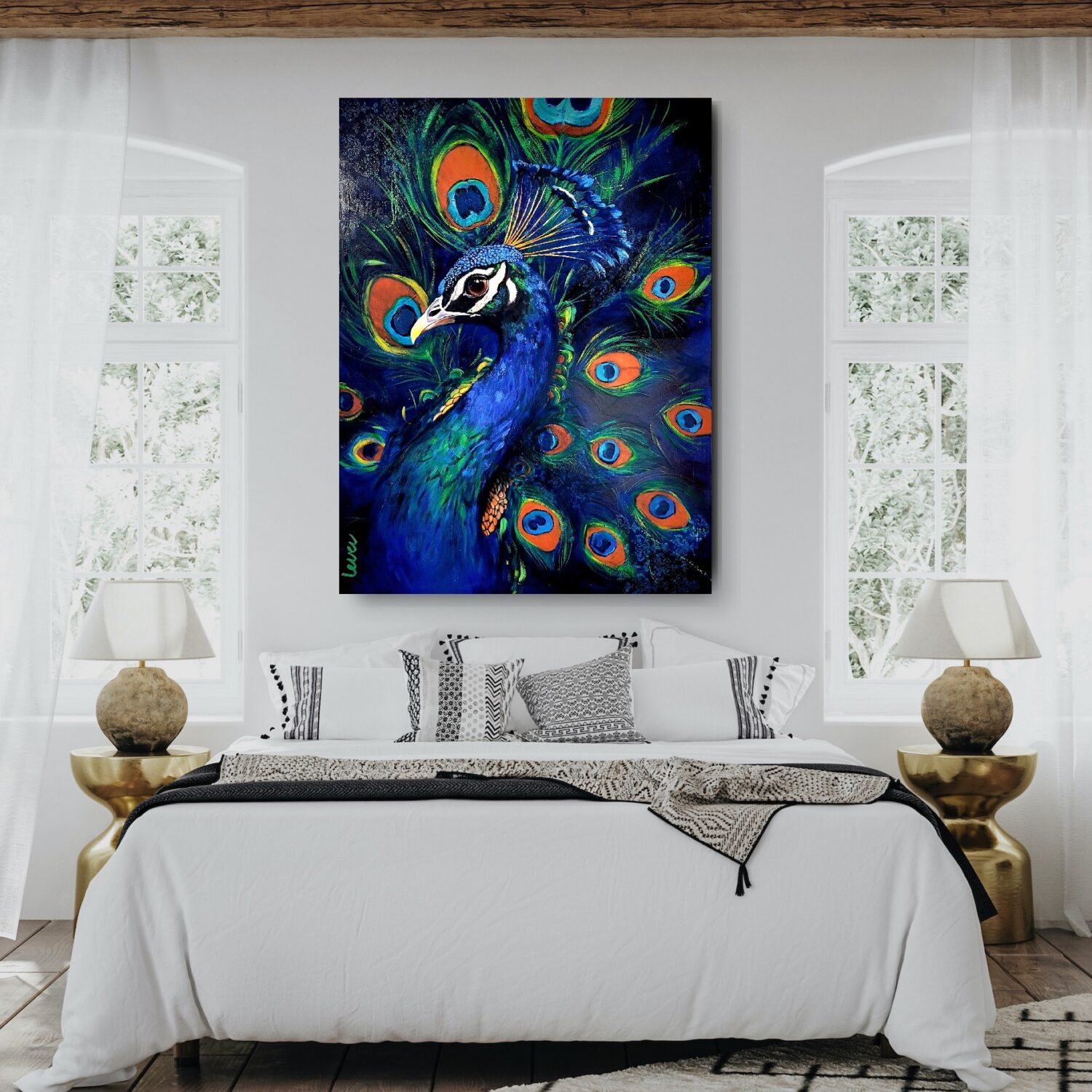 The peacock, feathers fully extended, stands as a symbol of visibility and earned confidence. Not the kind rooted in perfection, but the kind that emerges after doubt, effort, and perseverance. Each layer in this painting mirrors the process of growth itself — messy at times, demanding patience, yet ultimately revealing strength.