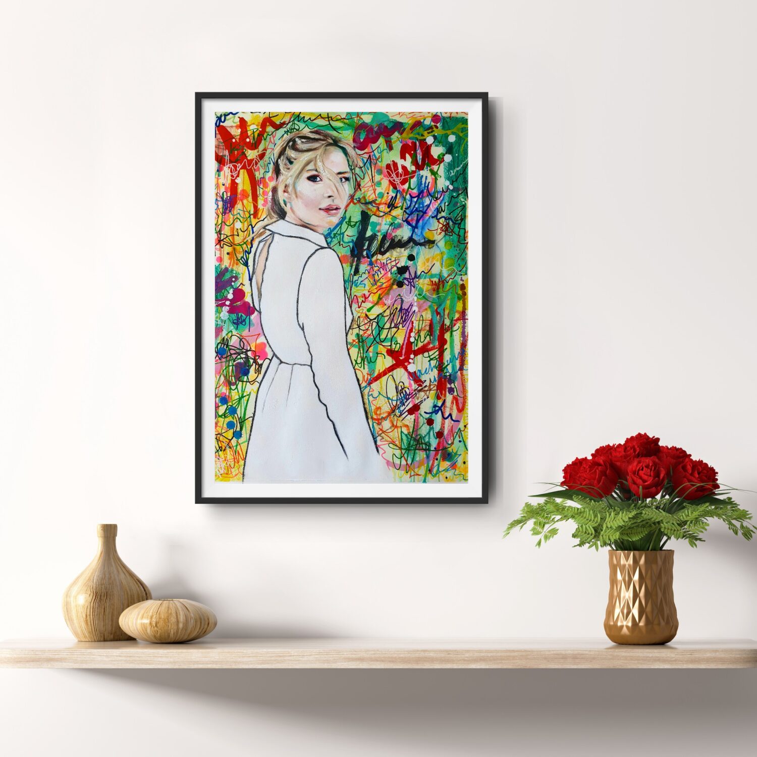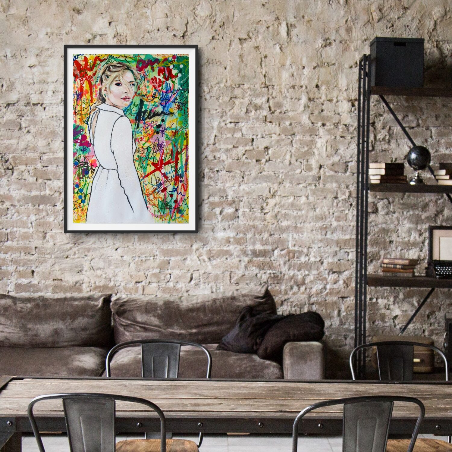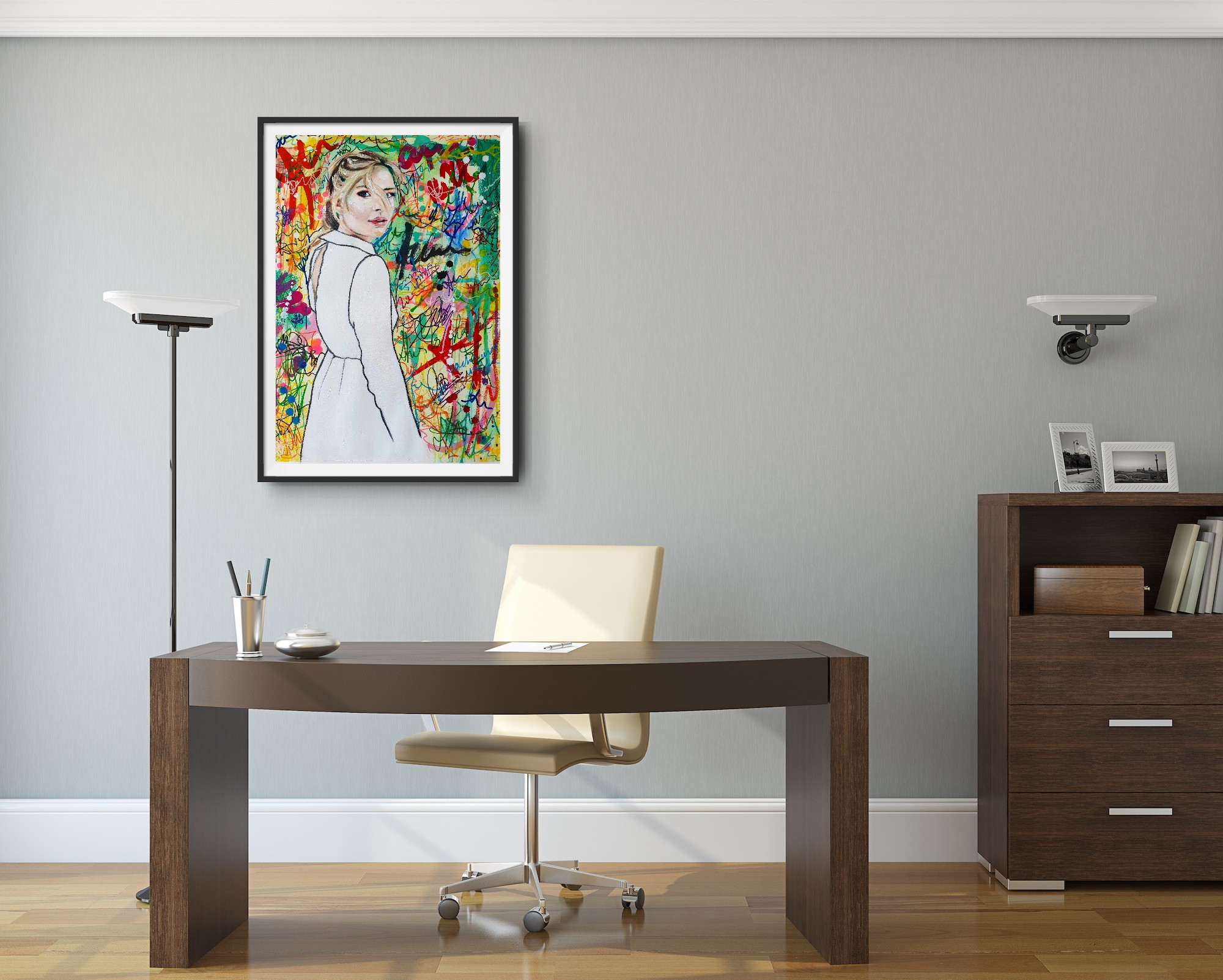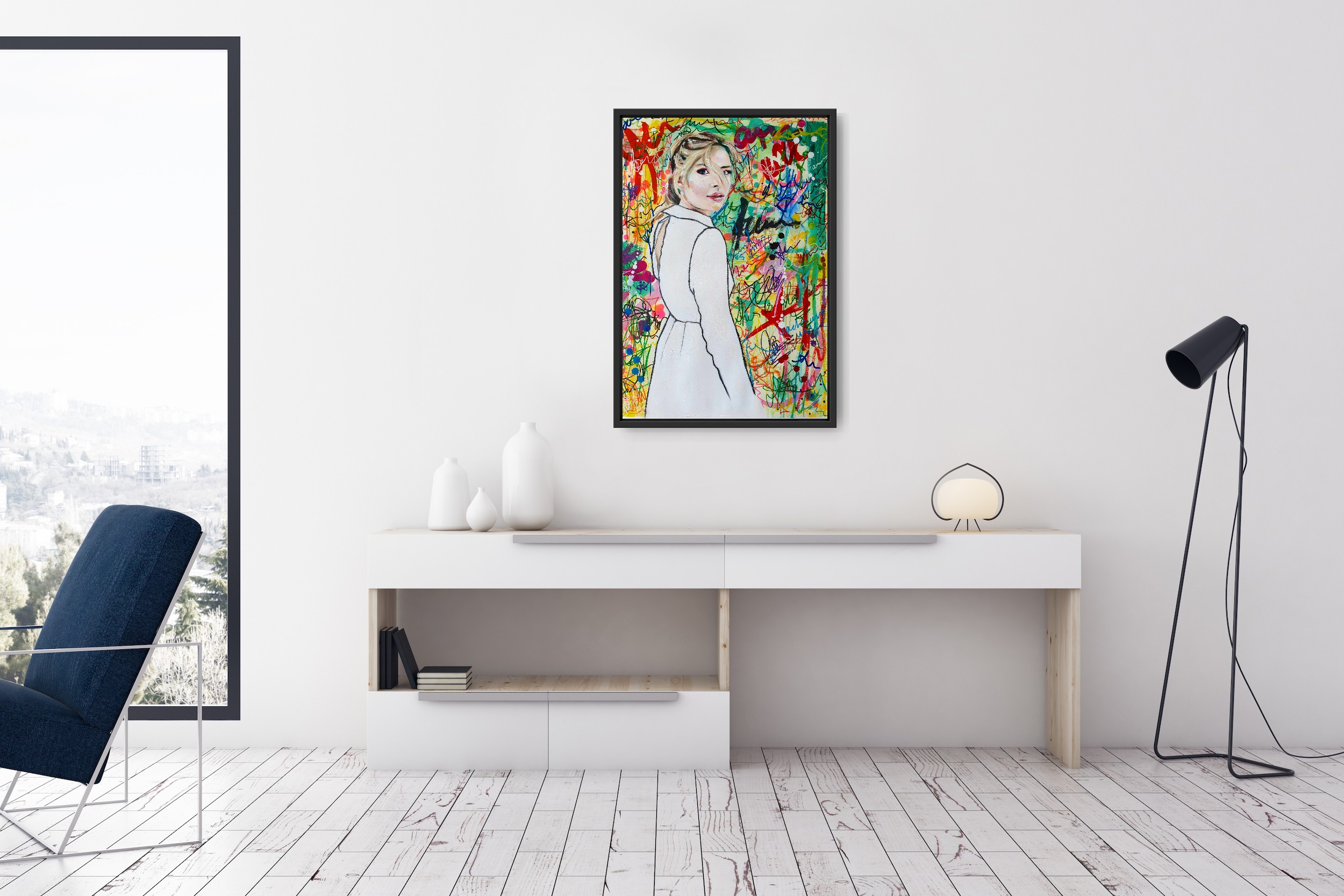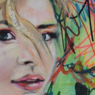 In this piece, I’ve poured vibrant energy and raw emotion onto paper using acrylics, oils, spray, and ink. It dances between expressionism and pop art, capturing the complexity of human expression. Through bold strokes and vivid hues, it evokes feelings of introspection and the pulsating beat of the urban soul. This work embodies a spirit of defiance and individuality, injecting a dynamic burst of life into any space it graces.