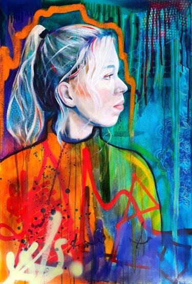 Welcome to the ‘Positive Vibes’ Collection, a series of seven large-scale paintings bursting with color and energy. These vibrant artworks combine elements of pop art, street art, and fine art to create a dynamic and joyful visual experience.