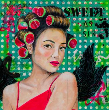 Meet the ‘Sassy Girls’ Collection, a vibrant and bold series of ten original paintings celebrating the essence of womanhood. Each piece features gorgeous women adorned with big curlers or soda cans in their hair, combining elements of pop art, expressive art, stencil art, and fine art.