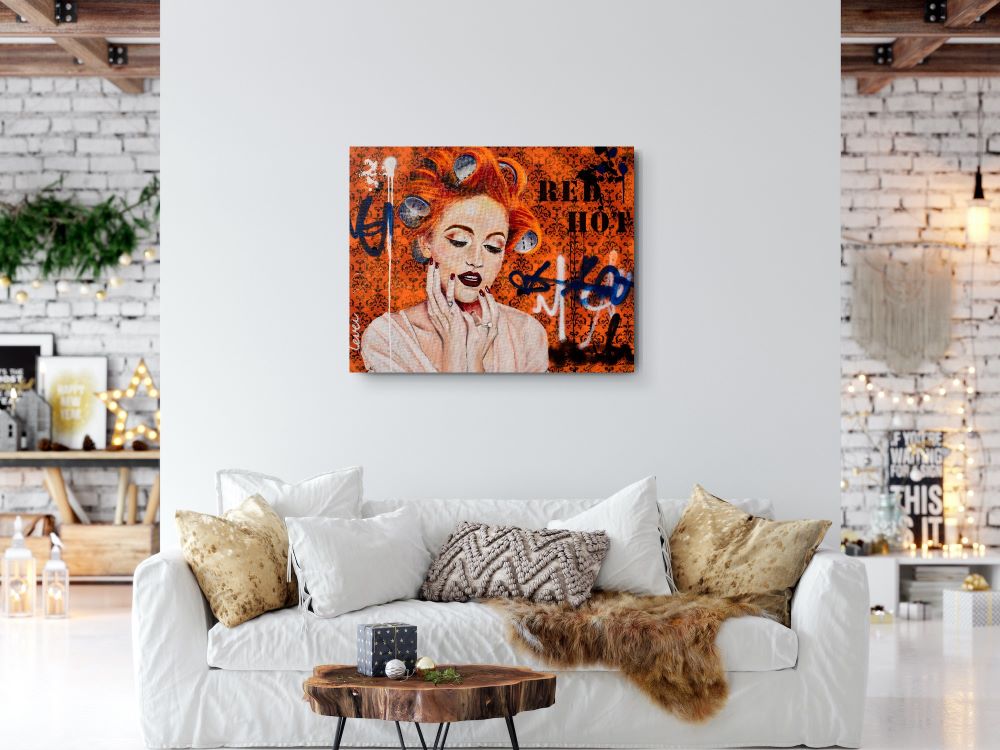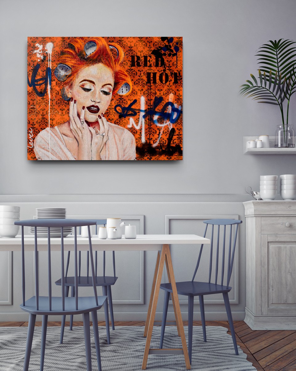 This painting, ‘Red Hot’, is all about the passionate side of womenhood, we love to love, the anticipation, the lust, and the afterglow. We are lovers, not fighters, and for us, love is everything.