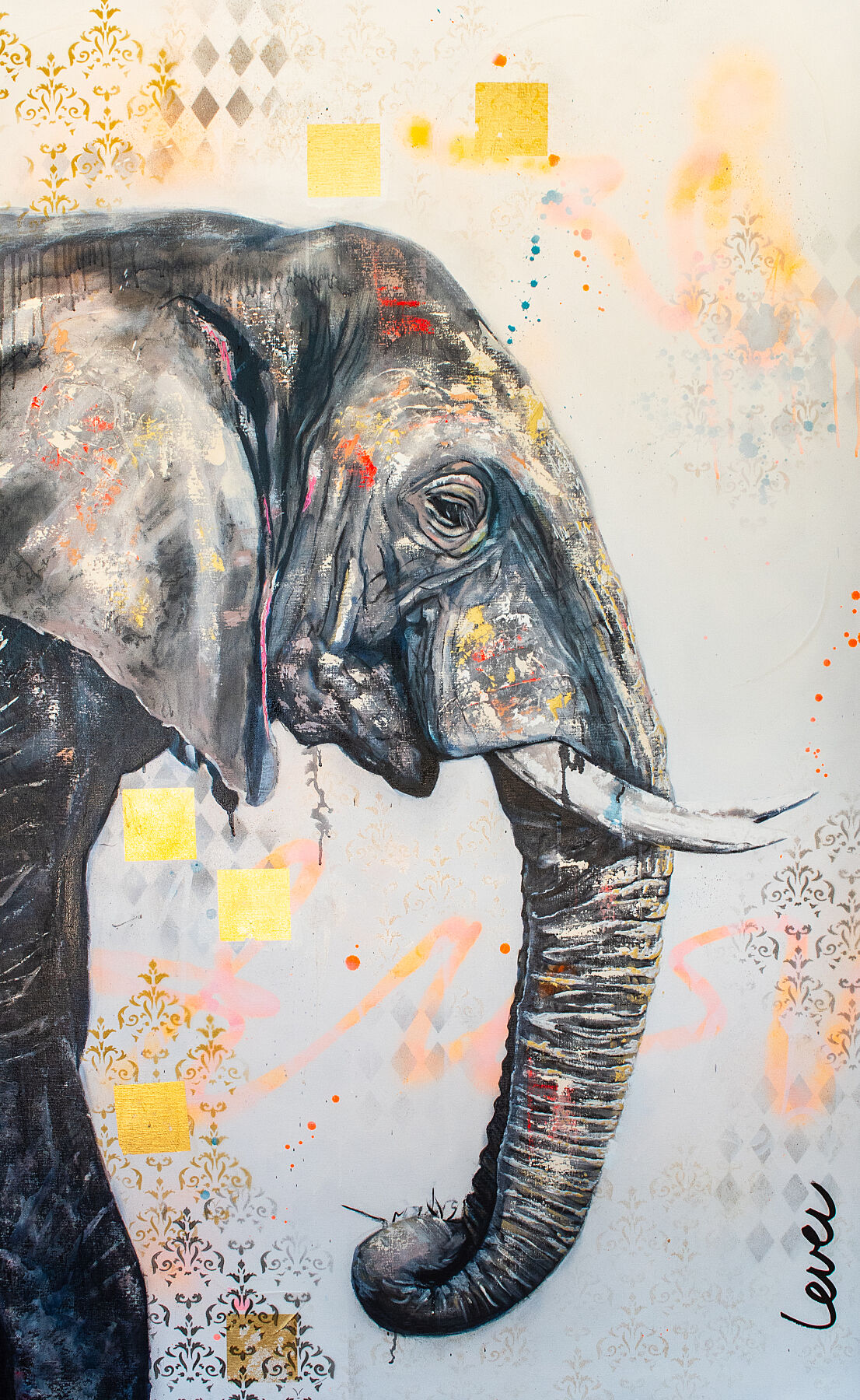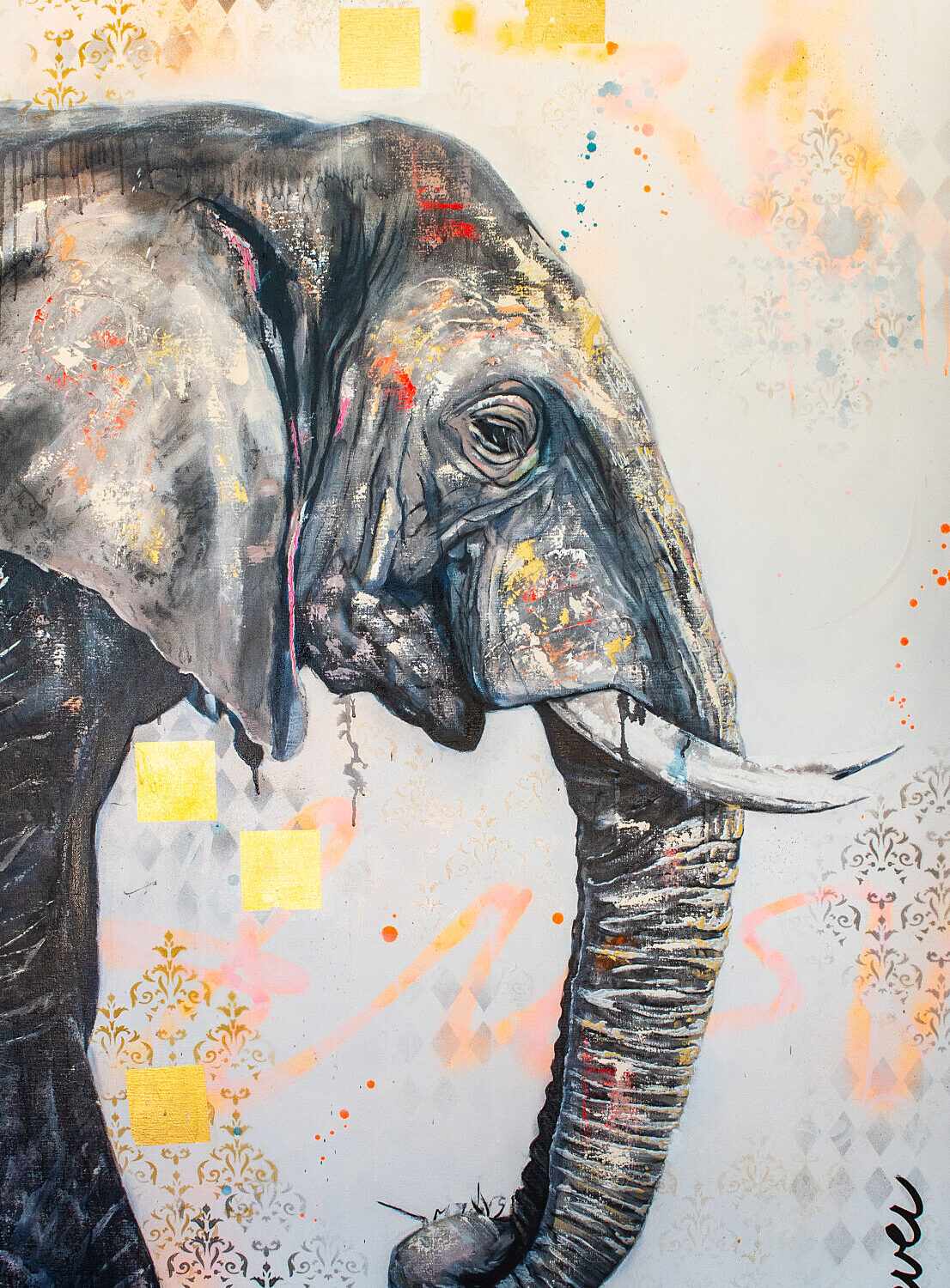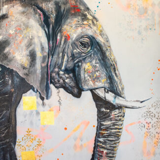 Introducing “The Matriarch,” a powerful depiction of a female elephant leading her herd with wisdom and strength. This fine art print captures her commanding presence against an abstract white backdrop filled with symbolism.